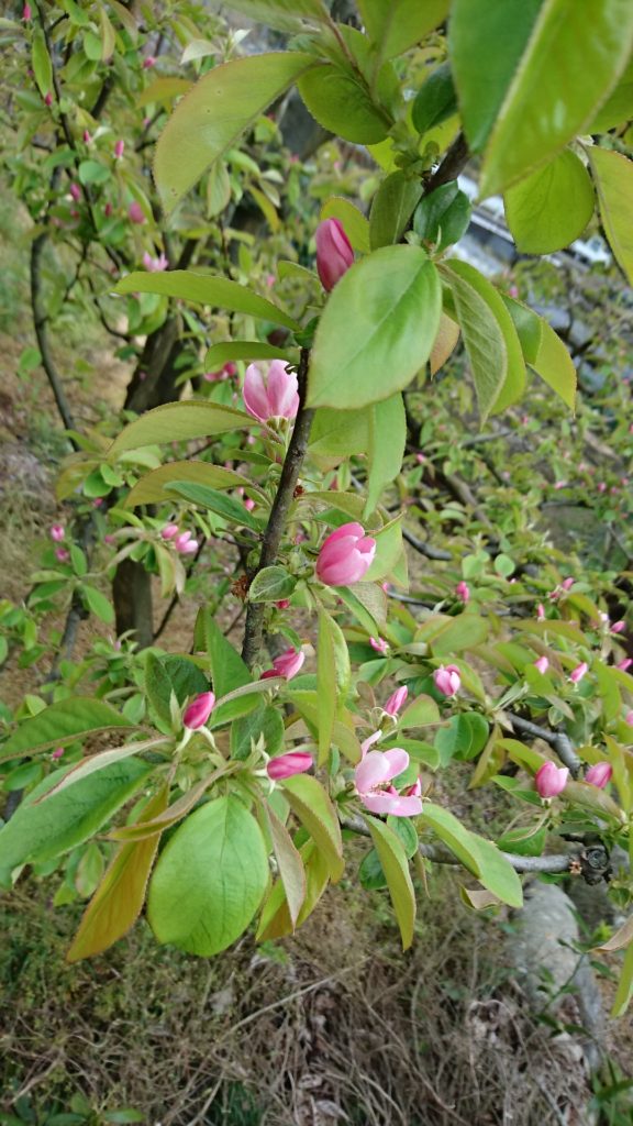 さゆり農園で育てているものシリーズ「花梨」かわいい花が咲いています。