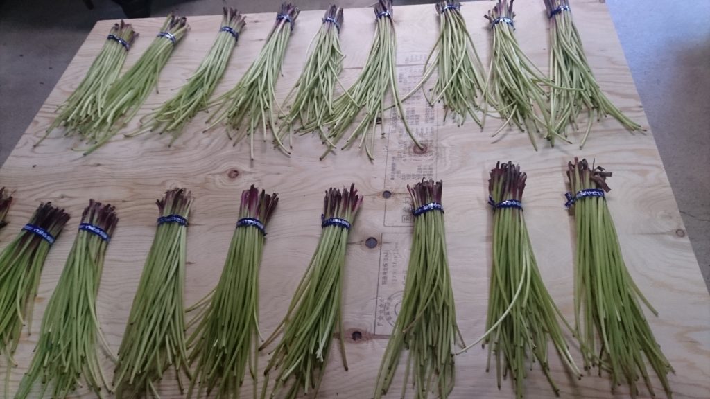 やまぶきの出荷が始まりました。綺麗な空気と水で美味しく育っています。ご注文お待ちしております。