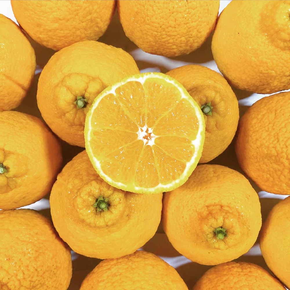 清見タンゴールとポンカンの交配でデコポンと同品種で人気の品種。味は甘くてジューシー・濃厚で美味しい。頭に(デコ)があるのが特徴。