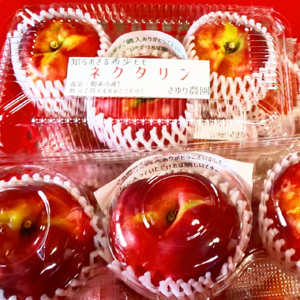 さゆり農園のネクタリンとは、桃の一種でうぶ毛がなく、果実の表面はツルツルしています。桃と比べると果肉がしっかりし実崩れしにくいのが特徴で、すももより大きく桃より少し小さい、希少モモで、栽培が非常に難しく兵庫県産はほとんど出回りません。皮を剥いて食べるとねっとりした黄色い果肉は驚くほど甘く濃厚な味です。鼻の奥に残る香りとアクセントの酸味がおいしい果実で、南国のフルーツにも通じる甘さを備えています。7月中旬より収穫予定しておりますが、天候に左右され出荷時期が前後する事があります。予めご了承ください。